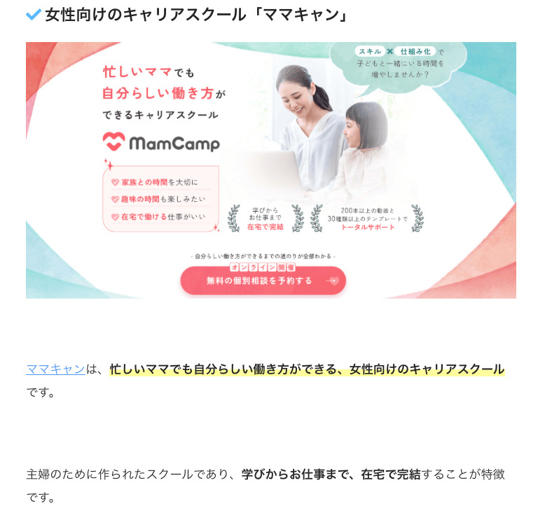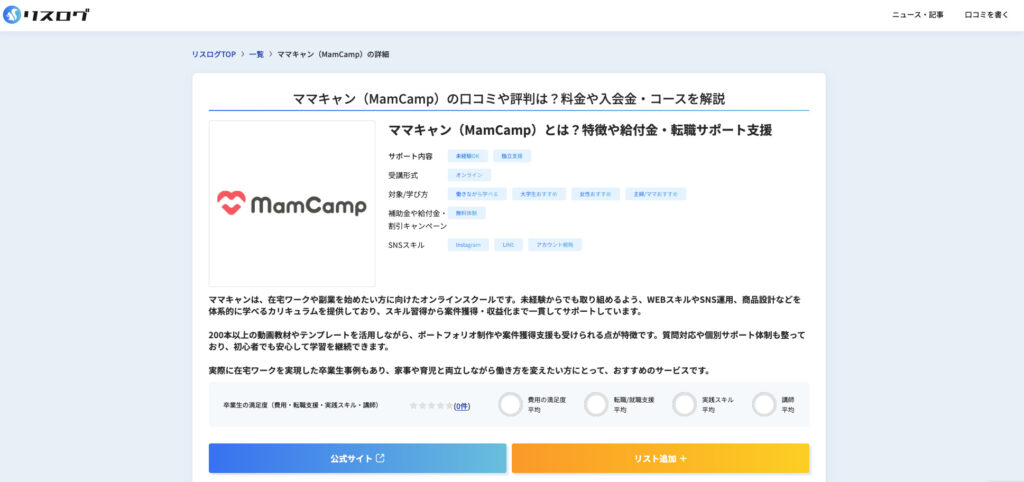 ママキャン(MamCamp)の口コミや評判は?料金や入会金・コースを解説